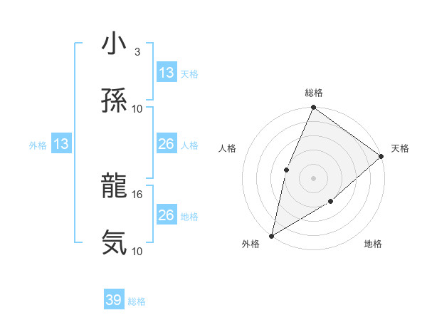 小孫 龍気さんを姓名の画数から五運を鑑定