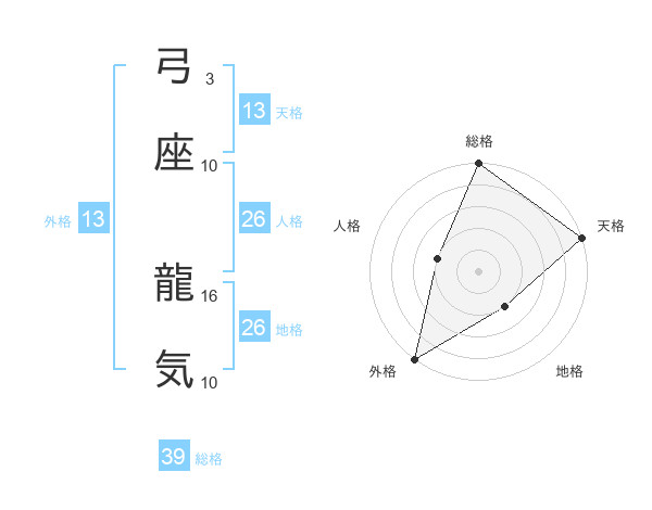 弓座 龍気さんの外格は13画の5点!