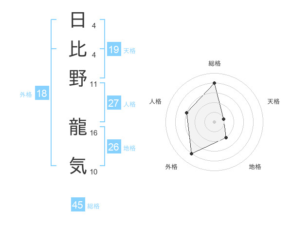 日比野 龍気さんを姓名の画数から五運を鑑定