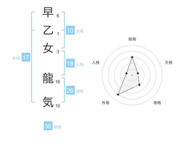 早乙女 龍気さんを姓名の画数から五運を鑑定