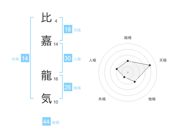 比嘉 龍気さんを姓名の画数から五運を鑑定