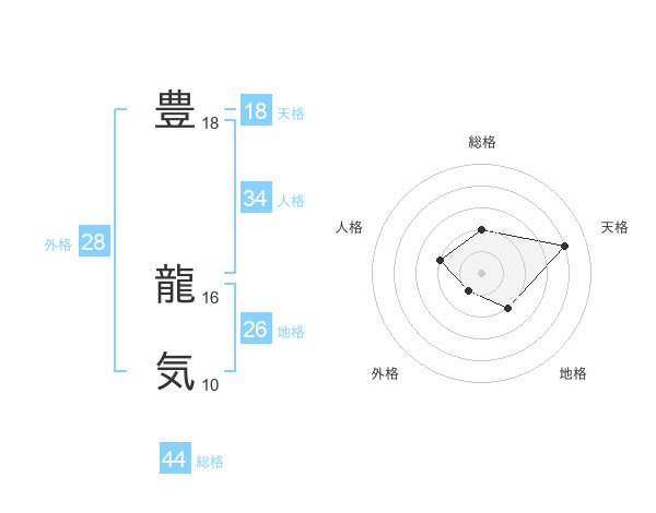 豊 龍気さんの総格は44画の2点!