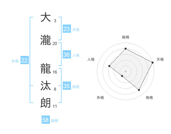 大瀧 龍汰朗さんを姓名の画数から五運を鑑定