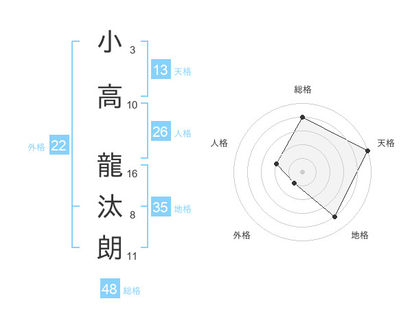小高 龍汰朗さんの総格は48画の4点!