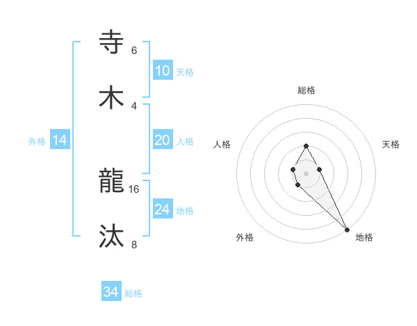 寺木 龍汰さんの総格は34画の2点!