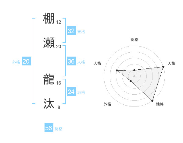 棚瀬 龍汰さんを姓名の画数から五運を鑑定