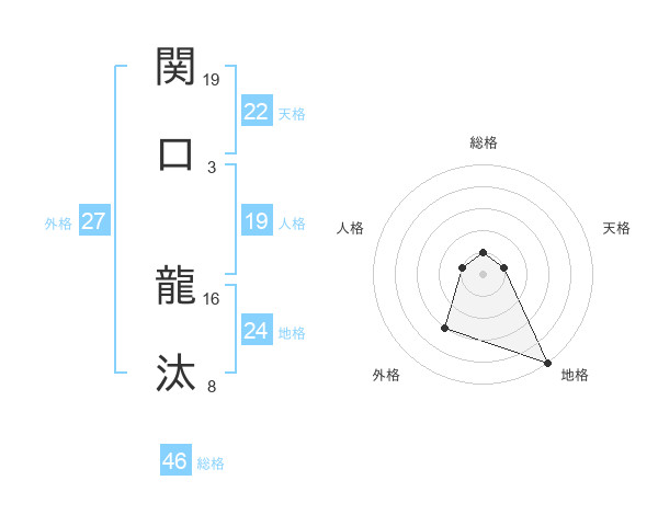 関口 龍汰さんの天格は22画の1点!