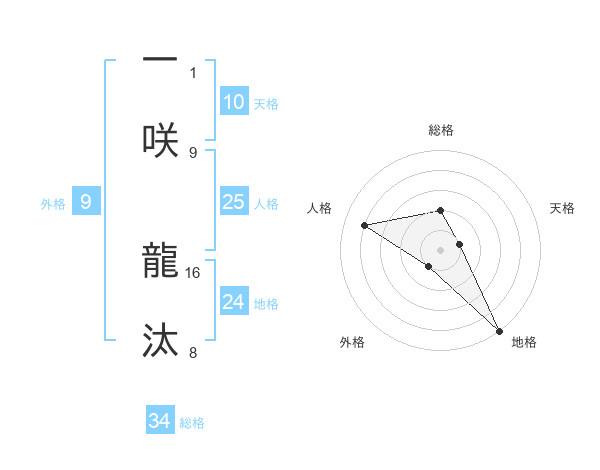 一咲 龍汰さんを姓名の画数から五運を鑑定