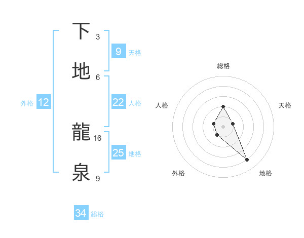 下地 龍泉さんを姓名の画数から五運を鑑定