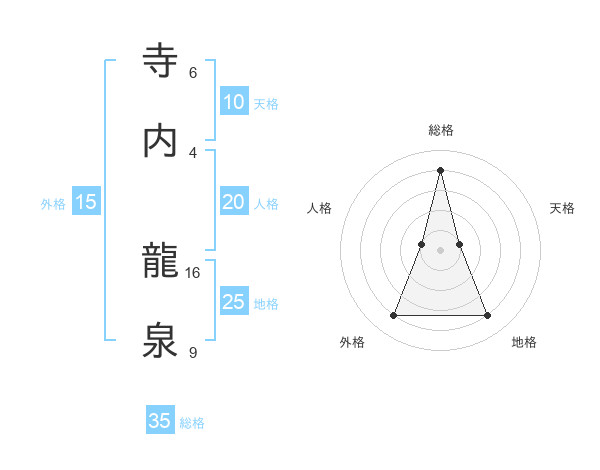 寺内 龍泉さんの総格は35画の4点!