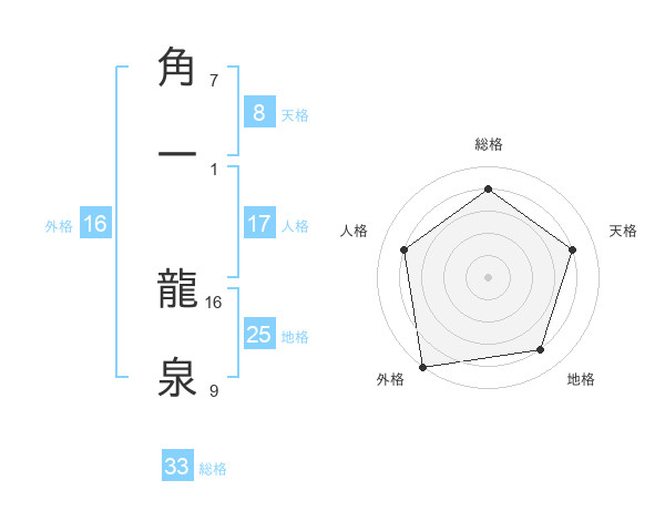 角一 龍泉さんを姓名の画数から五運を鑑定