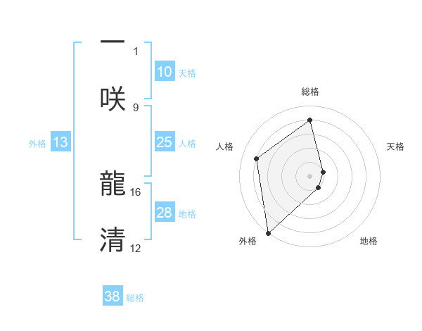 一咲 龍清さんの総格は38画の4点!