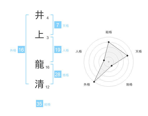 井上 龍清さんの総格は35画の4点!