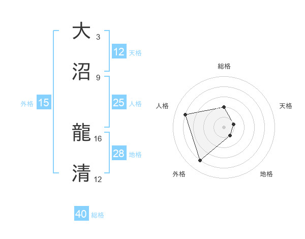 大沼 龍清さんを姓名の画数から五運を鑑定
