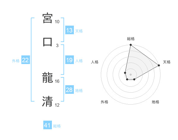 宮口 龍清さんの天格は13画の5点!