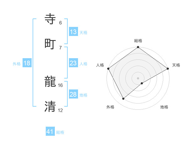 寺町 龍清さんを姓名の画数から五運を鑑定