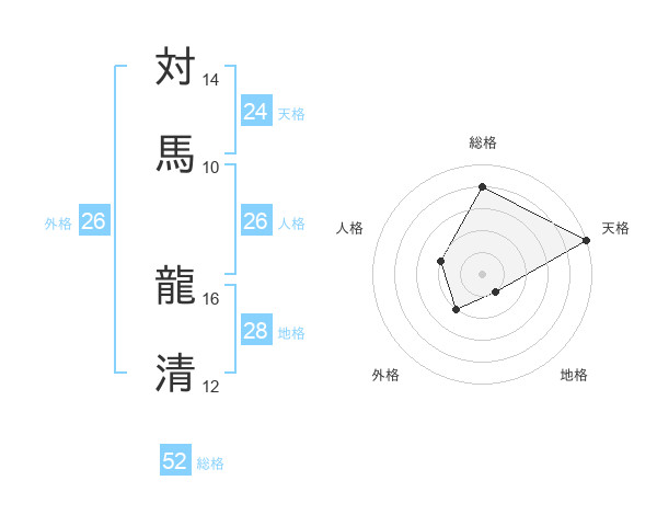 対馬 龍清さんの総格は52画の4点