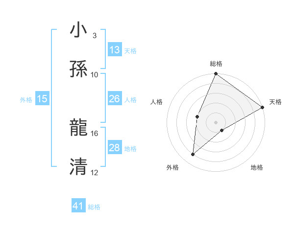 小孫 龍清さんの天格は13画の5点!