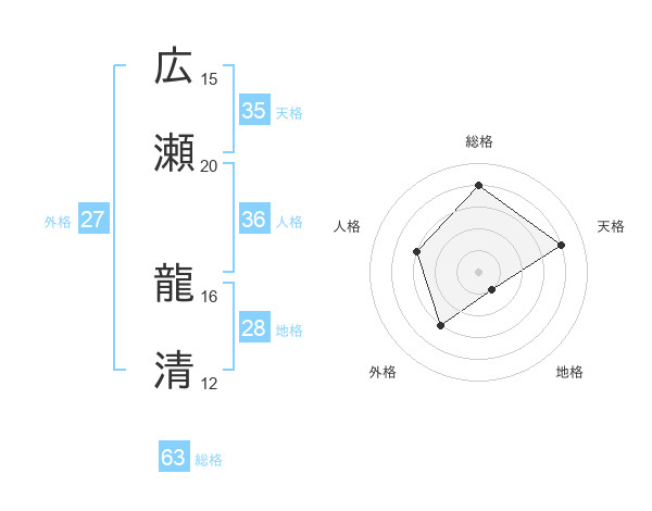 広瀬 龍清さんの総格は63画の4点!
