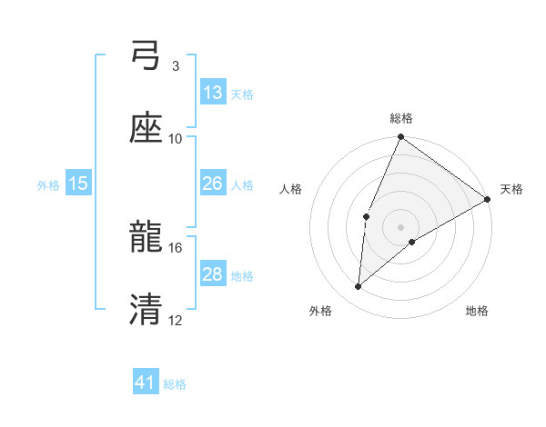 弓座 龍清さんの天格は13画の5点!