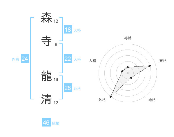 森寺 龍清さんの総格は46画の1点!