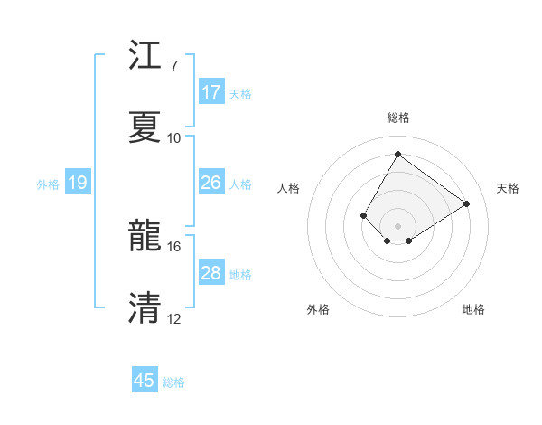 江夏 龍清さんを姓名の画数から五運を鑑定