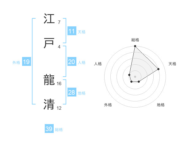 江戸 龍清さんを姓名の画数から五運を鑑定