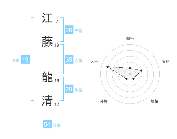 江藤 龍清さんの総格は54画の1点!