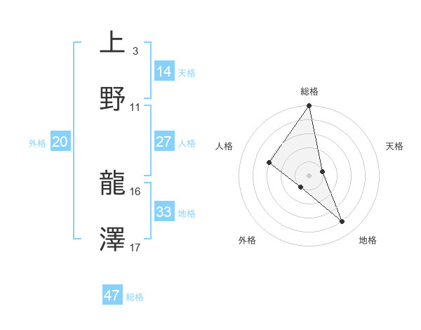 上野 龍澤さんを姓名の画数から五運を鑑定