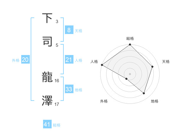 下司 龍澤さんの総格は41画の5点!