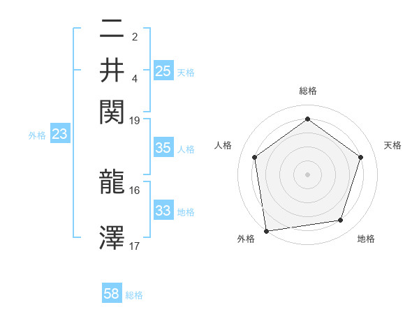 二井関 龍澤さんの総格は58画の4点!