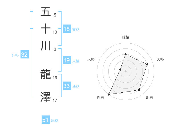 五十川 龍澤さんを姓名の画数から五運を鑑定