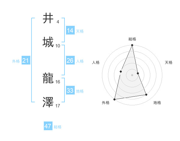 井城 龍澤さんの総格は47画の5点!