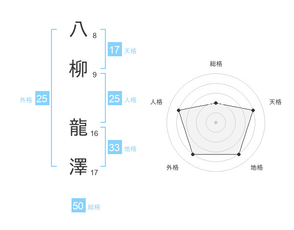 八柳 龍澤さんの総格は50画の2点!