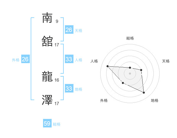 南舘 龍澤さんの総格は59画の1点!