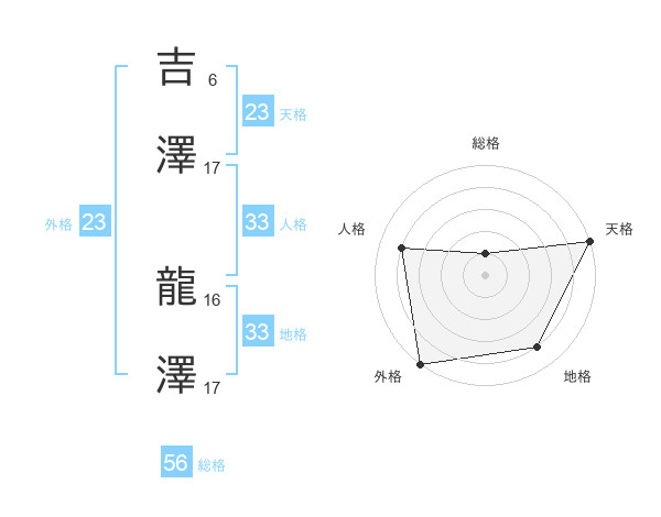 吉澤 龍澤さんを姓名の画数から五運を鑑定