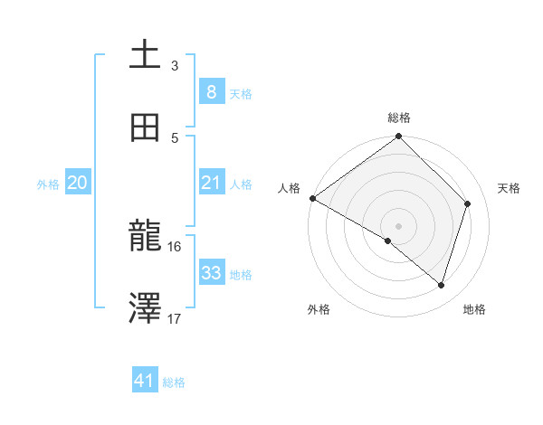 土田 龍澤さんを姓名の画数から五運を鑑定