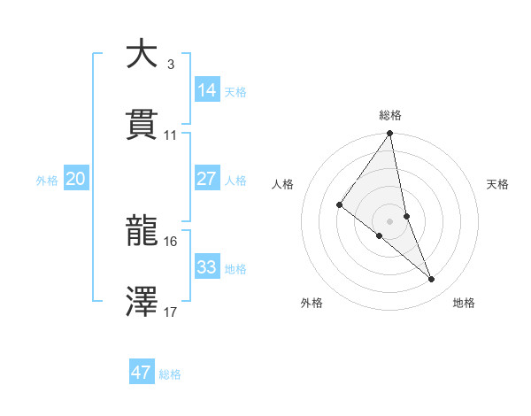 大貫 龍澤さんを姓名の画数から五運を鑑定