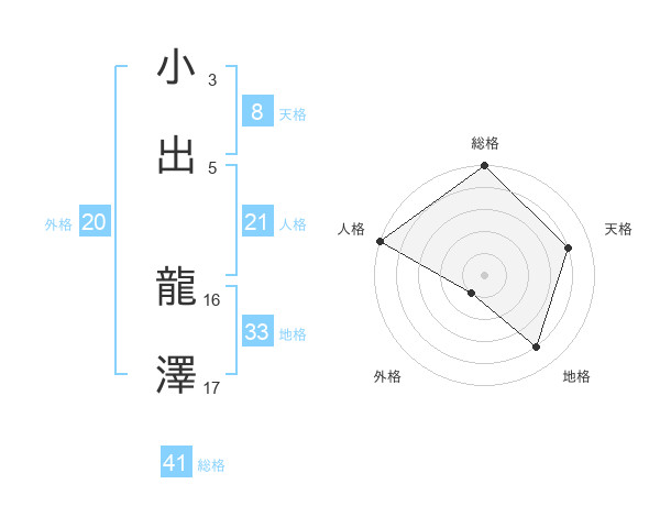 小出 龍澤さんを姓名の画数から五運を鑑定