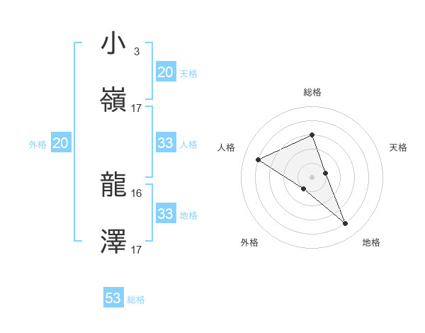 小嶺 龍澤さんの天格は20画の1点!