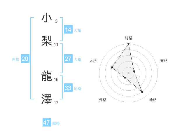 小梨 龍澤さんの総格は47画の5点!