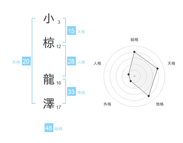 小椋 龍澤さんの総格は48画の4点!