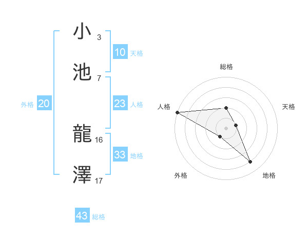 小池 龍澤さんを姓名の画数から五運を鑑定