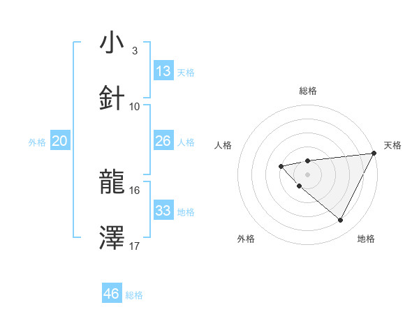 小針 龍澤さんを姓名の画数から五運を鑑定