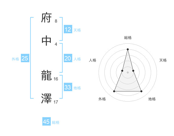 府中 龍澤さんの総格は45画の4点!