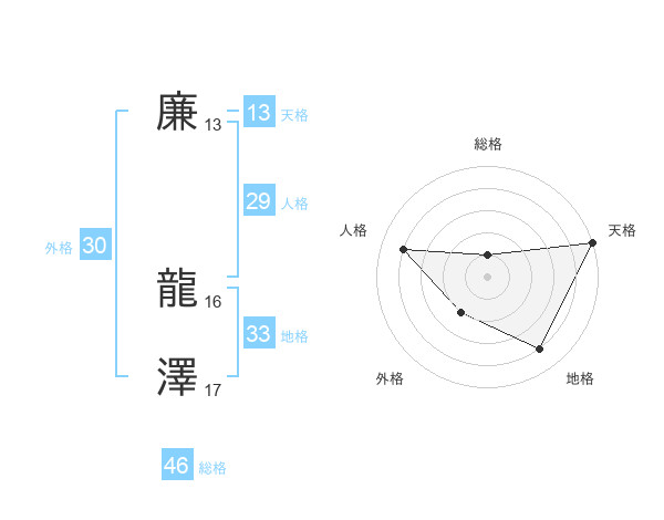 廉 龍澤さんを姓名の画数から五運を鑑定