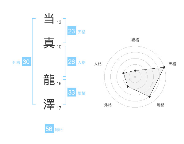 当真 龍澤さんを姓名の画数から五運を鑑定