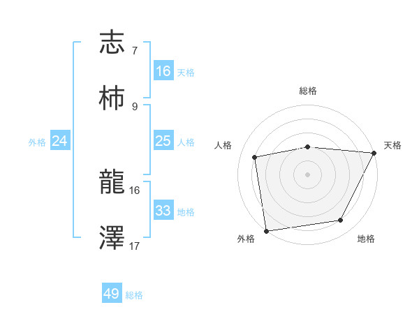 志柿 龍澤さんの総格は49画の2点!