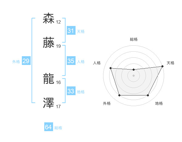 森藤 龍澤さんの天格は31画の5点!