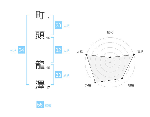 町頭 龍澤さんを姓名の画数から五運を鑑定